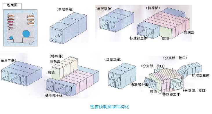 综合管廊预制拼装技术是国际综合管廊发展趋势之一,大幅降低施工成本,提高施工质量,节约施工工期。综合管廊标准化、模块化是推广预制拼装技术的重要前提之一,预制拼装施工成本的幅度取决于建设管廊的规模长度,而标准化可以使得预制拼装模板等设备的使用范围不局限于单一工程,从而降低摊销成本,有效促进预制拼装技术的推广应用。此外,编制基于综合管廊标准化的通用图,大幅降低设计单位的工作量,节约设计周期,提高设计图纸质量。
